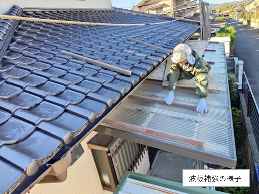 波板が割れない様に、庇の部分を丁寧に補強をしています。